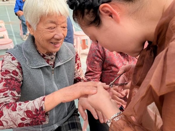 物資表心意,服務(wù)更暖心。活動現(xiàn)場專門設(shè)置了公益理發(fā)、健康義診、推拿服務(wù)等志愿項目,由醫(yī)生和志愿者們?yōu)槔先颂峁┵N心服務(wù),現(xiàn)場氣氛溫馨而有序。87歲的章秋玉老人家在推拿醫(yī)生按完肩頸后,紅了眼眶:“年年都想著我們,真是和家里人一樣親。”?